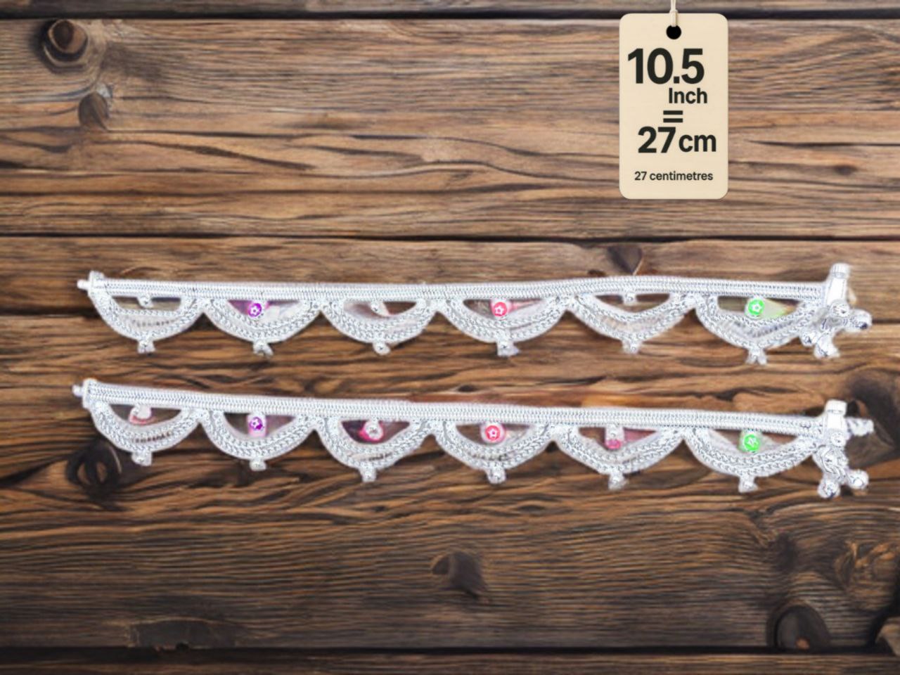 - TRADITIONAL DESIGN: German Silver anklets featuring intricate patterns with delicate dangling bells and colourful stone embellishments in red and green