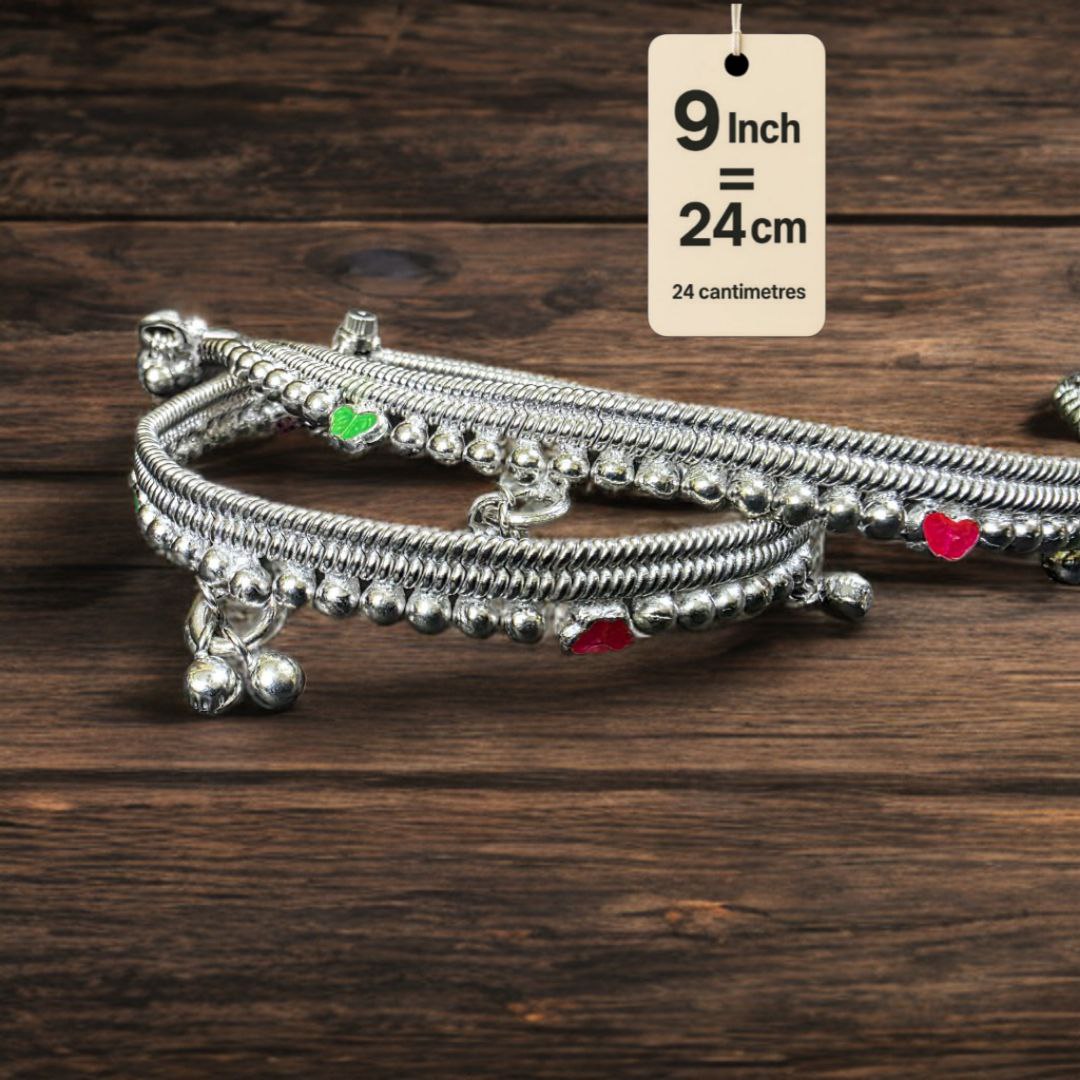 German Silver anklet Toe Ring, Wavy Pattern Design, Adjustable Size, Silver plated anklet, Set of 2-9Inch