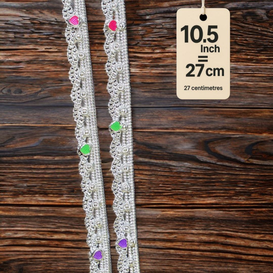German Silver -Silver Plated Traditional Anklet with NON-Adjustable Size, Contemporary Style, Silver PLATED, 2-Piece Set-10.5 Inch Coloured Heart Details, Set of 2