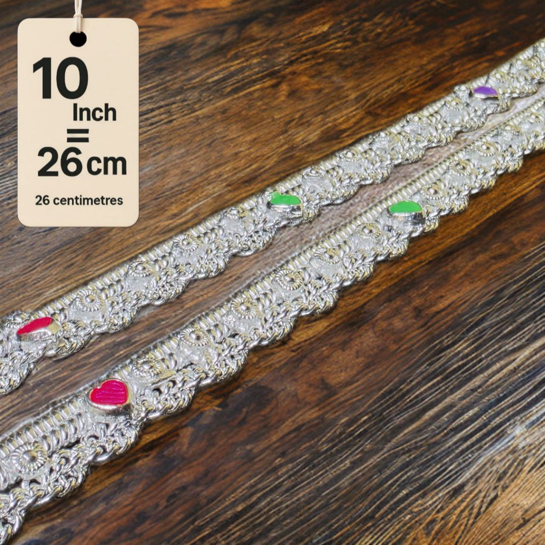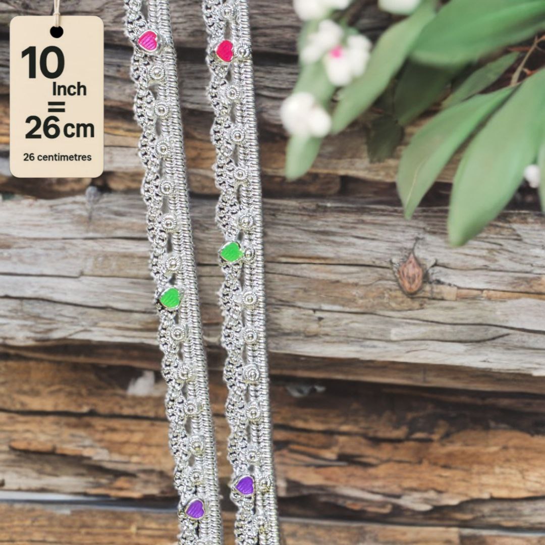 German Silver -Silver Plated Traditional Anklet with NON-Adjustable Size, Contemporary Style, Silver PLATED, 2-Piece Set-10 Inch Coloured Heart Details, Set of 2