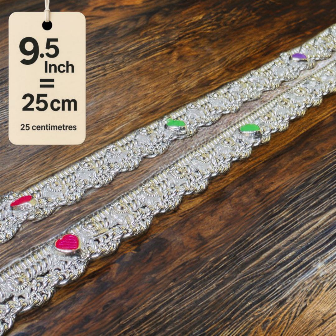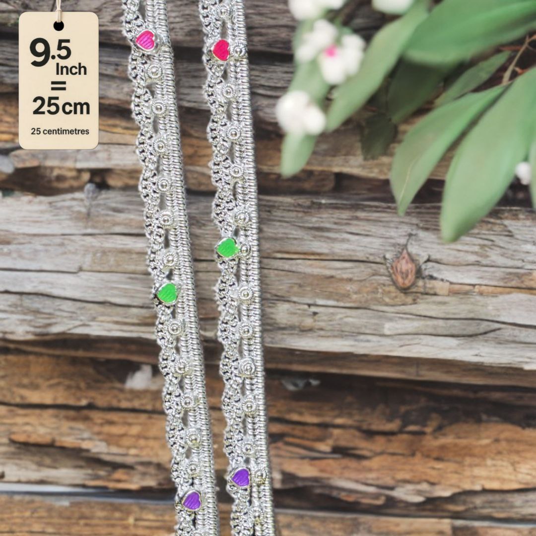 German Silver -Silver Plated Traditional Anklet with NON-Adjustable Size, Contemporary Style, Silver PLATED, 2-Piece Set-9.5 Inch Coloured Heart Details, Set of 2